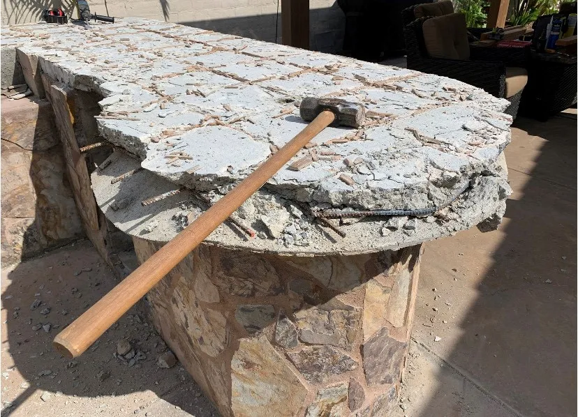 Makita Tools USA jackhammer to help with demo. He figures it will take him the weekend to get rid of the BBQ island, so he starts out slow with the help of his son.