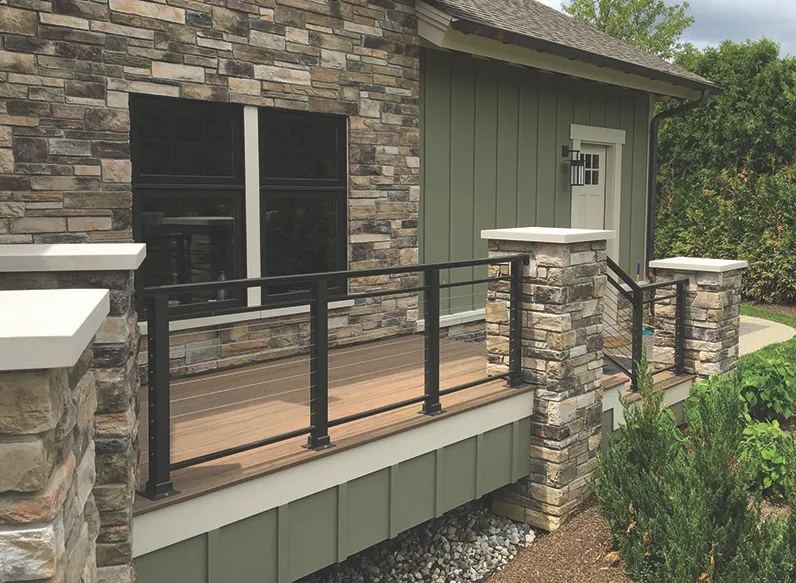 Cable railing, which offers a virtually unobstructed views without the daily maintenance of glass railing systems, is becoming increasingly popular. Stainless steel cables combine with aluminum posts and rail assemblies to form a strong, durable, maintenance-free system that will last for a lifetime. But not all cable systems are the same—those with bulky turnbuckle systems for tightening the cables or with mid-rail vertical support pickets added are falling out of favor with consumers who’d prefer to the see the view that those items obstruct.