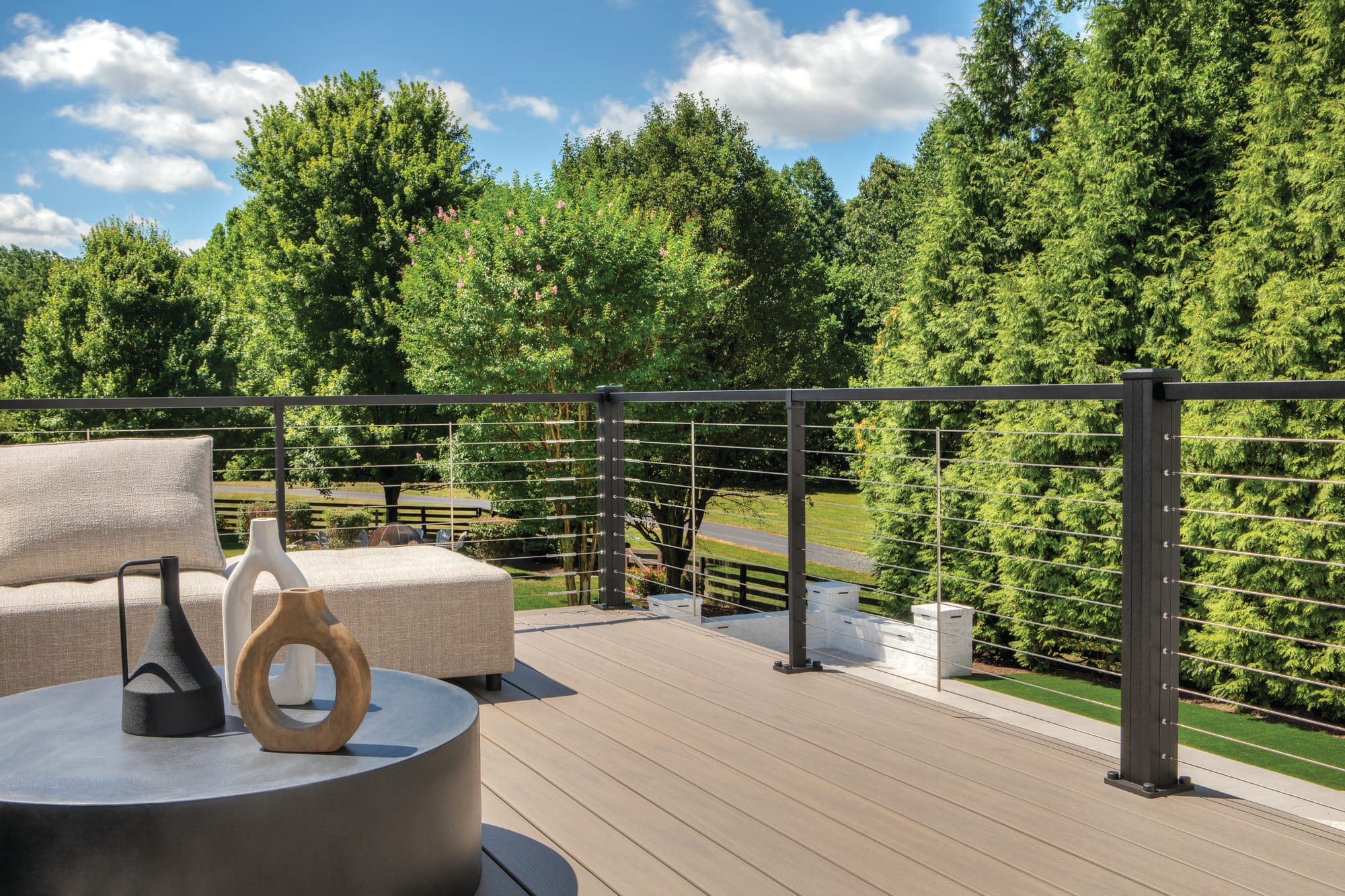 California-based designer and Instagram influencer Leslie Harris Keane of LHK Interiors agrees. “Cable railing finished off our space so nicely. I love that I can see through it, and it doesn’t block any of our views.” Keane received complimentary Trex decking and railing as part of an influencer collaboration.