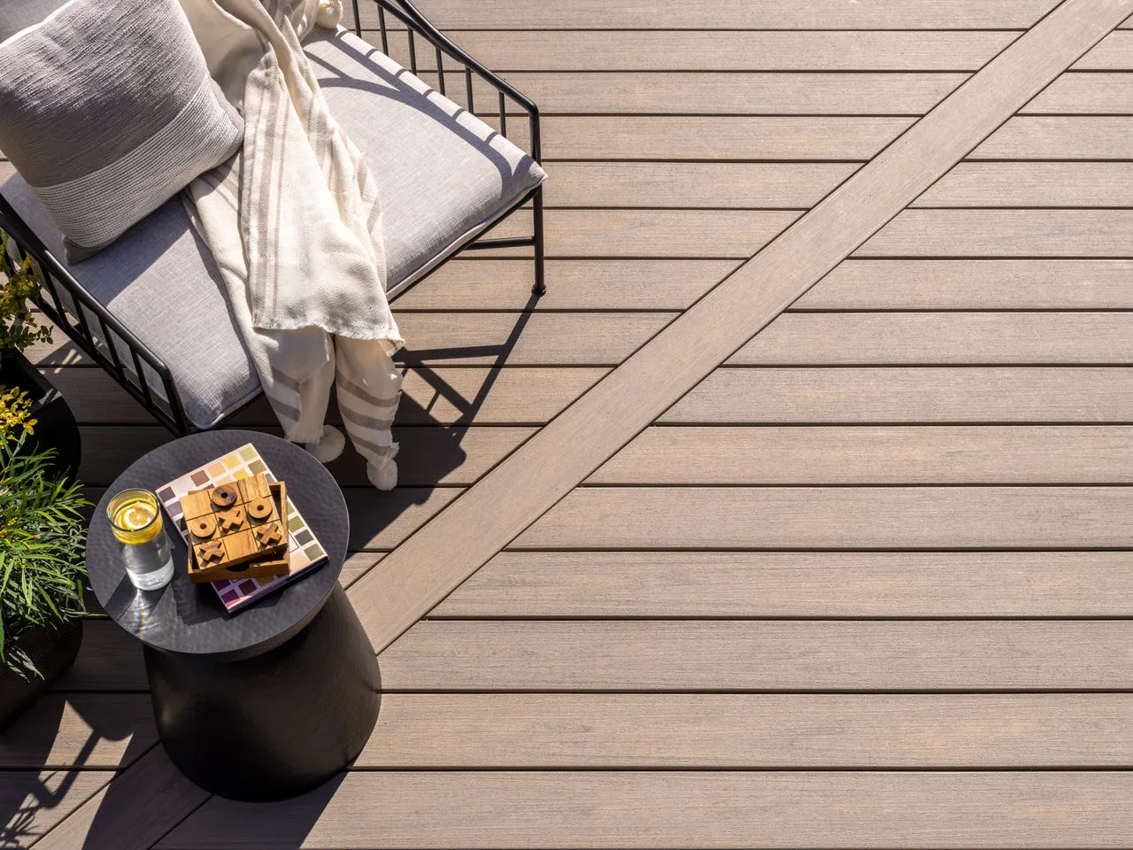 Made from 95% recycled and reclaimed materials, Trex Transcend Lineage represents the brand’s coolest decking yet–literally. Engineered with heat-mitigating technology in the shell, Lineage boards reflect the sun to keep the surface cooler. This premium composite decking also features an elevated aesthetic with subtle hues and elegant graining that delivers an unmatched natural appearance.